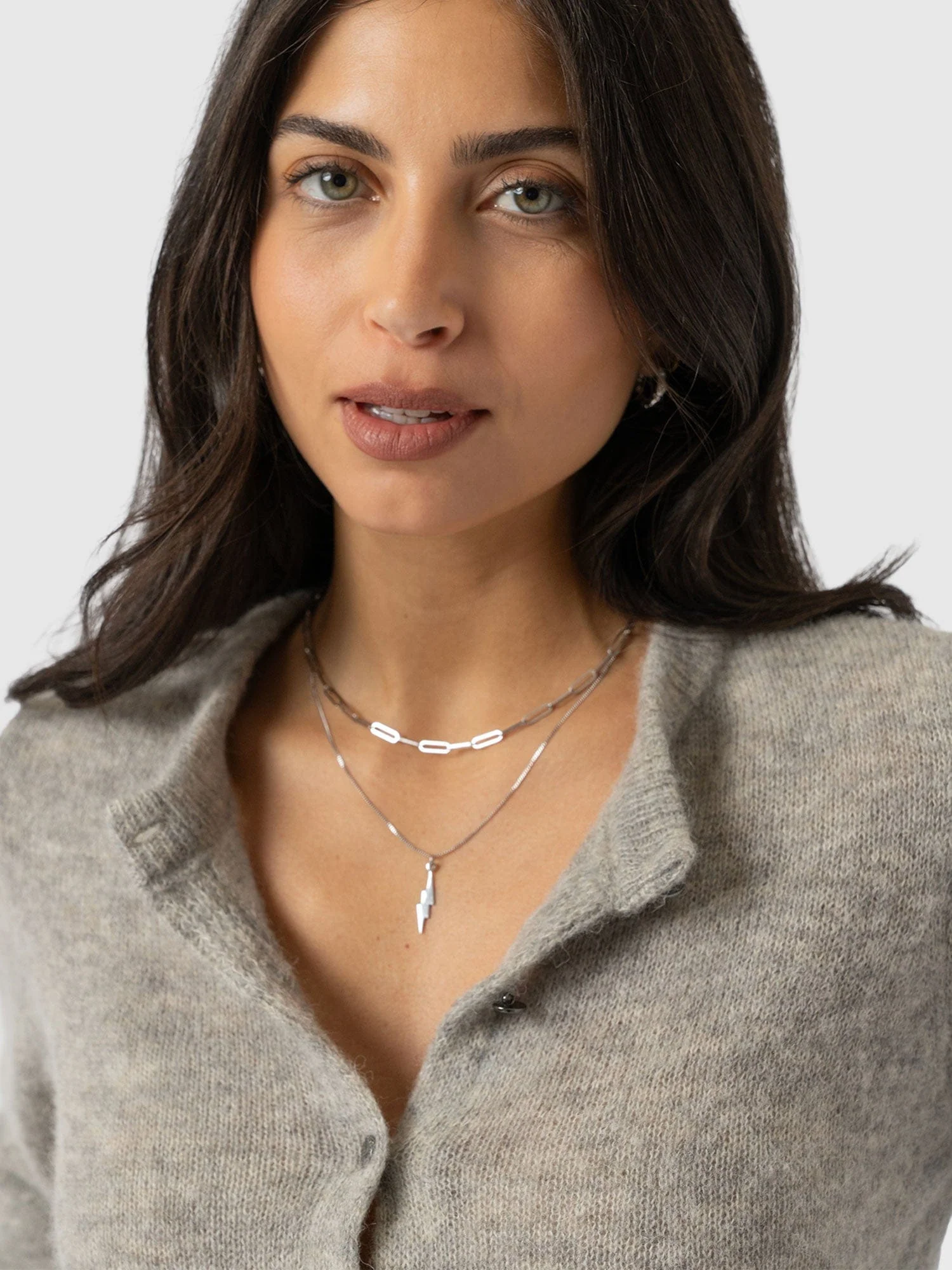 A timeless cardigan that's perfect for the transitional seasons, the Ariella Cardigan in grey is set to be a staple in your wardrobe. It's handmade by our expert artisans in Europe using a sumptuously soft alpaca wool blend and shaped to a classic fit with branded silver shank buttons down the front. Wear yours alone, or layered over an Easy Tee depending on the weather.