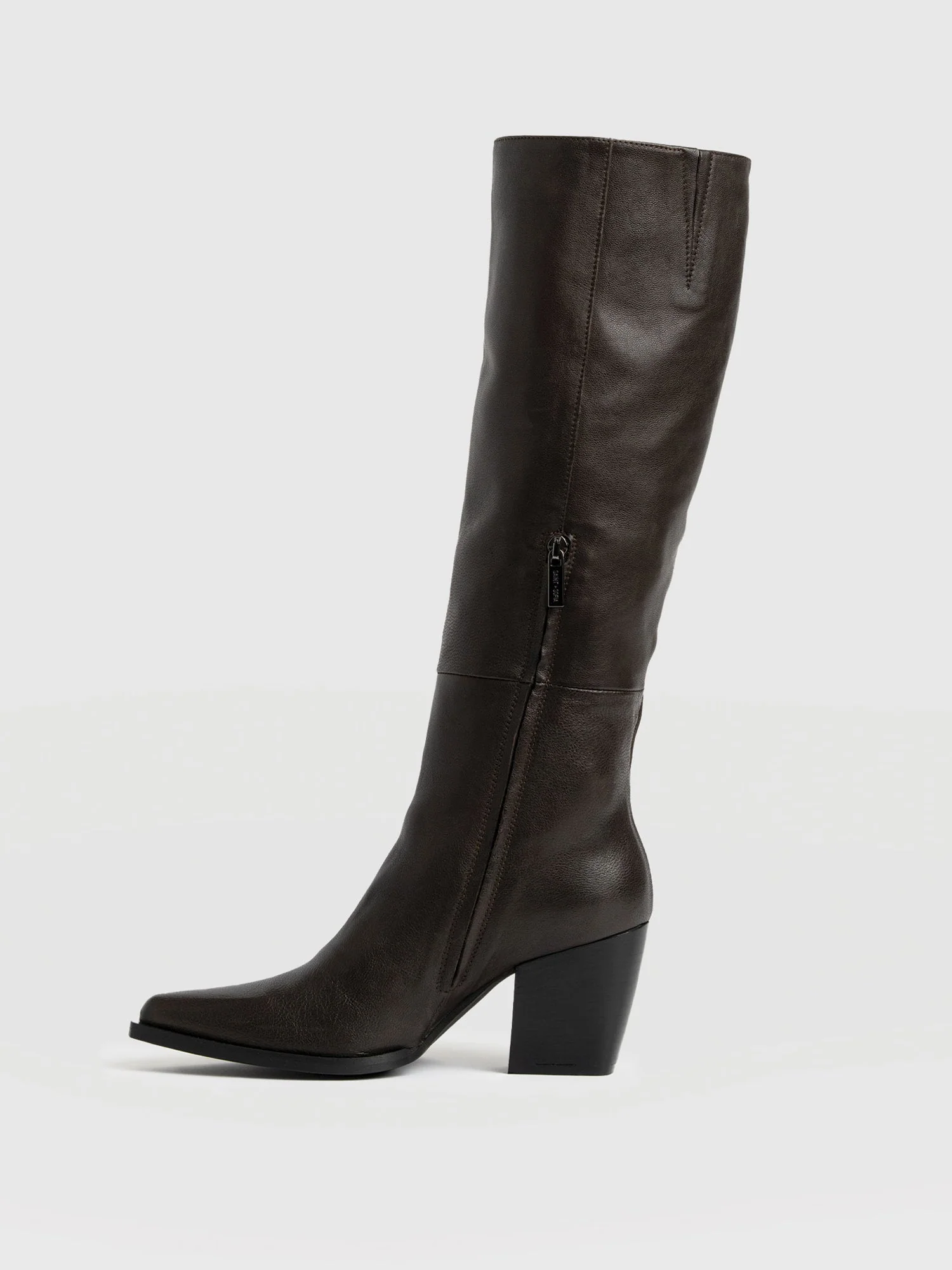 When it comes to must-have pieces this Autumn, there's one accessory you can't miss: the Dallas Knee High Boot. This statement pair is handmade in Italy using the finest Italian leather and is sculpted to a classic pointed toe silhouette with a comfortable block heel. Its panelled construction adds a contemporary edge while the sleek chocolate hue ensures timeless elegance. Wear yours with mini skirts or our leather shorts to create a head-turning look.