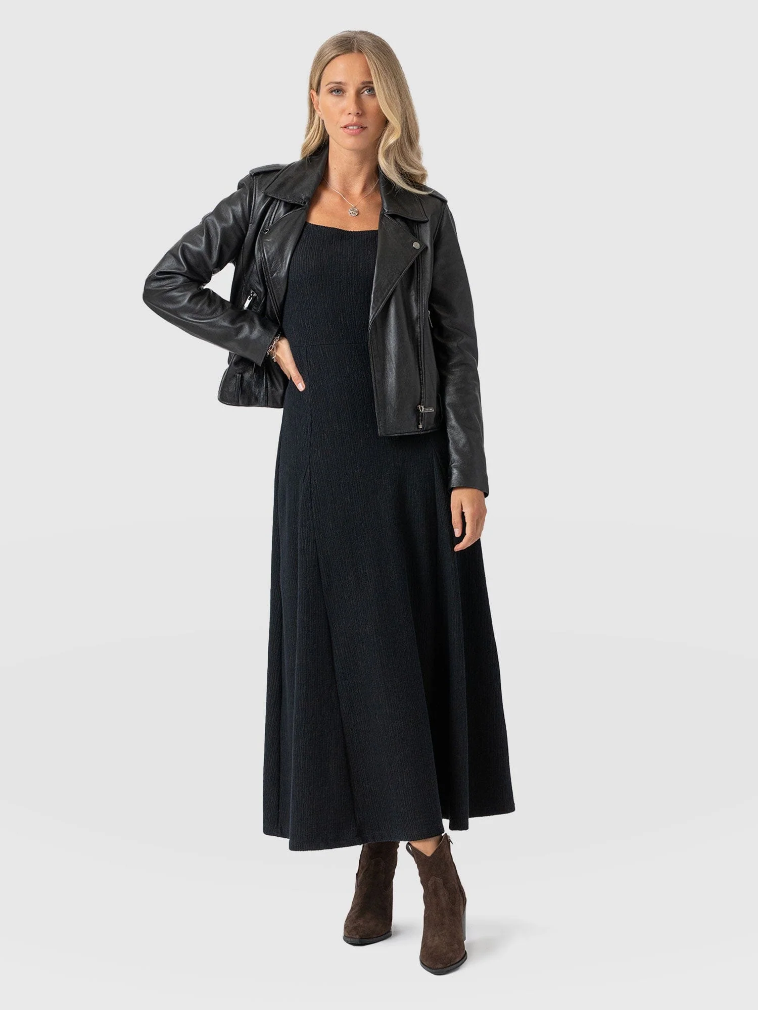 -70%Akia Short Sleeve Dress - Black Textured—