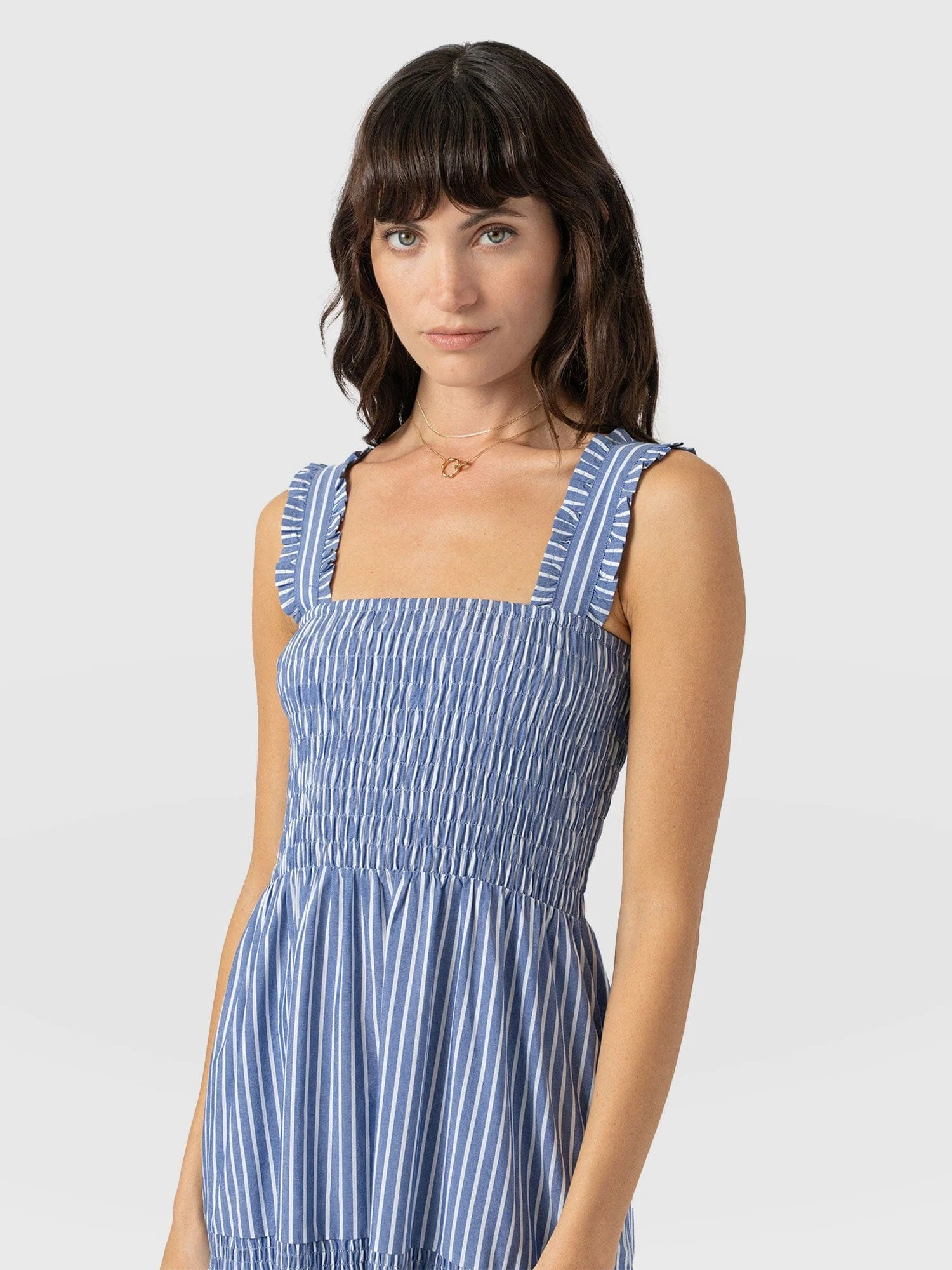 Maya Shirring Dress - Blue Stripe